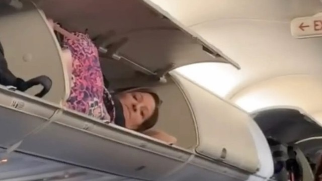 Nữ hành khách có khả năng tự nhét mình vào khoang chứa hành lý xách tay