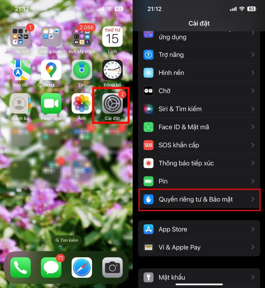 Để tắt phần theo dõi của các ứng dụng trên điện thoại, bạn cần vào phần Cài đặt của máy, chọn mục Quyền riêng tư và bảo mật.