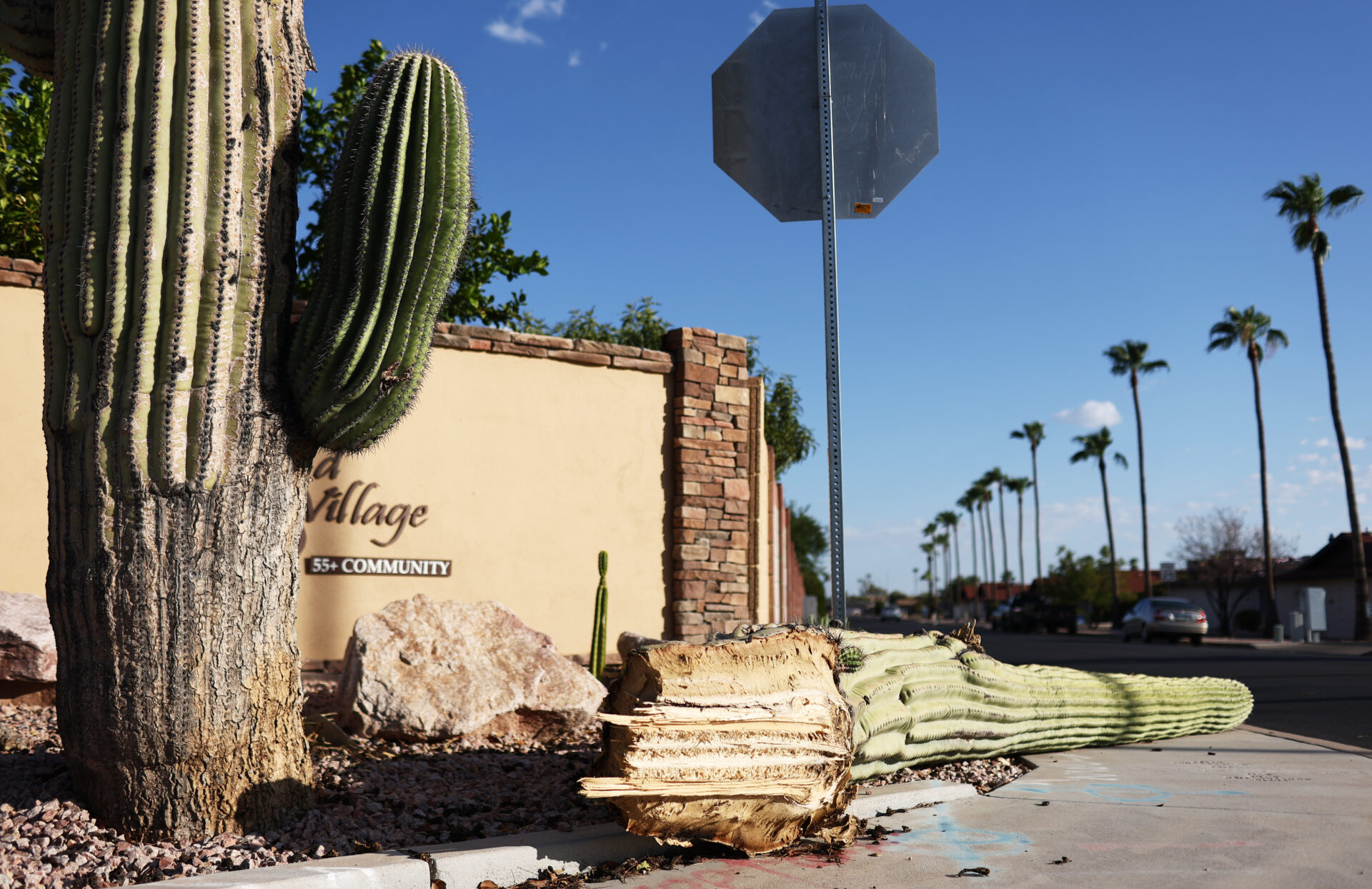 Nắng nóng quá sức trong những năm gần đây đã khiến cho xương rồng ở Arizona bị chết khô, ảnh chụp ngày 2 /8/2023 ở Mesa, Arizona (Hình: Mario Tama/Getty Images)