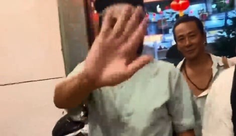 Ông còn dùng tay che mặt, ra hiệu từ chối khi phát hiện ống kính.