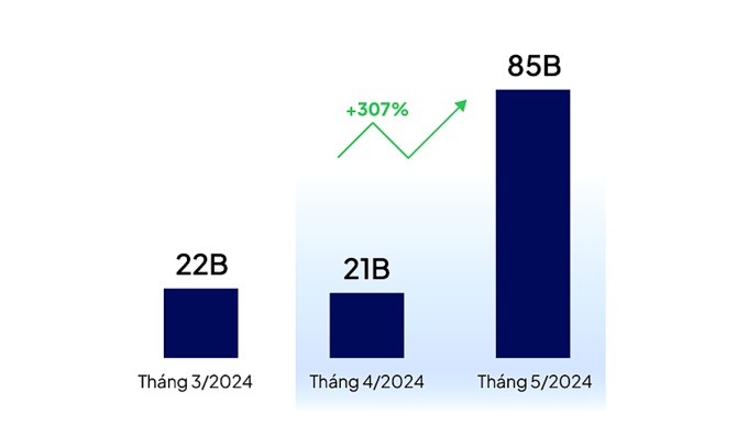 Dữ liệu thống kê bởi Công ty tư vấn thương mại điện tử YouNet ECI (Công ty phân tích dữ liệu và tư vấn thương mại điện tử thành lập năm 2021, trụ sở tại TP HCM) cho biết tổng giá trị giao dịch các dòng điện thoại iPhone trên nền tảng TikTok tháng qua tăng trưởng đến 307% so với tháng 4.