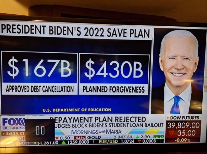 Kế hoạch lần này của Tổng thống Biden là xóa nợ 430 tỷ đô la mà không có sự chấp thuận của Quốc hội và sau khi Tối cao nói với chính quyền Biden điều này là vi hiến.