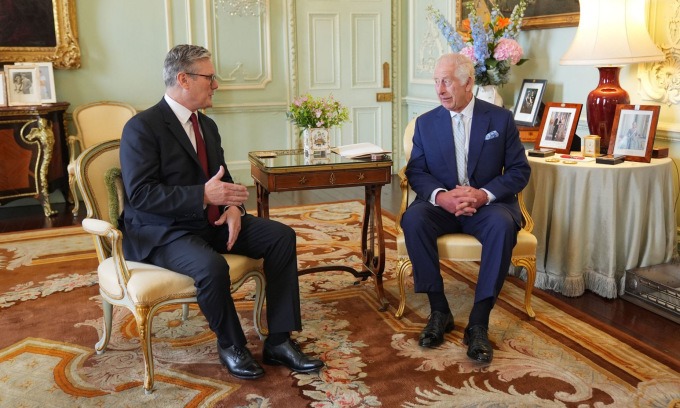 Lãnh đạo Công đảng Keir Starmer hôm nay đến yết kiến Vua Charles III tại Cung điện Buckingham ở thủ đô London, chính thức được bổ nhiệm làm Thủ tướng Anh và nhận yêu cầu thành lập chính phủ mới.