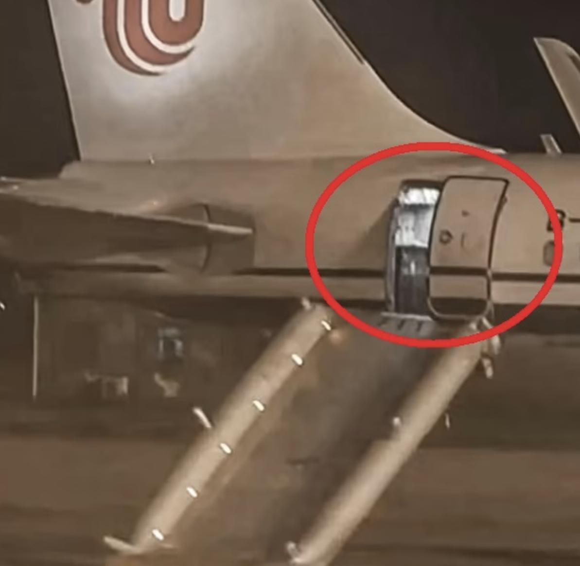 H́nh ảnh được chia sẻ trên mạng xă hội Trung Quốc cho thấy chiếc máy bay đang đậu trên đường băng với cửa thoát hiểm mở và cầu trượt đă được kích hoạt.