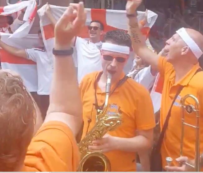 Ở một diễn biến khác, không phải không có những khoảnh khắc tích cực giữa các CĐV Anh và Hà Lan. Tại một góc trên đường phố Dortmund, một nhóm CĐV “Oranje” thổi kèn saxophone cho những người hâm mộ “Tam sư” hát bài “Hey Jude”, ca khúc họ thường sử dụng trong các trận đấu để ca ngợi Jude Bellingham.