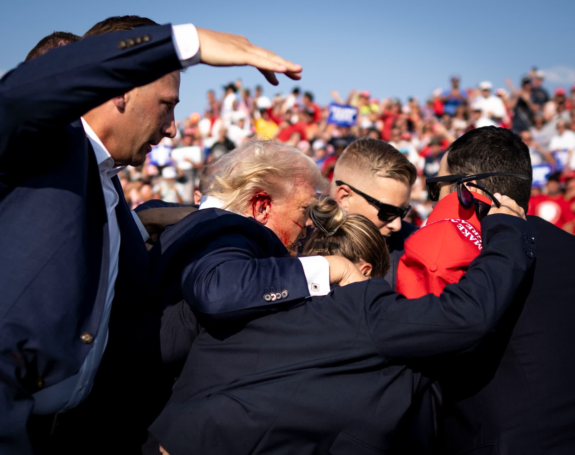 Trump được mật vụ đưa khỏi sân khấu. Ảnh: Doug Mills/NYT.