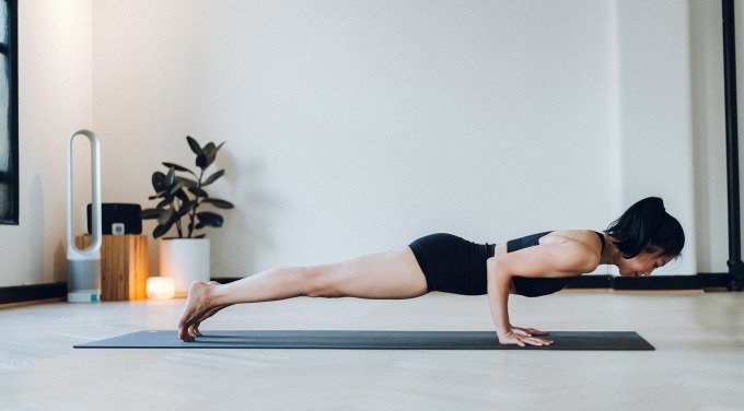 Bắt đầu bằng tư thế chống đẩy thẳng tay, hạ thấp cơ thể cho đến khi khuỷu tay ngang vai hoặc thấp hơn vai, cơ thể tạo đường thẳng từ đầu đến gót chân. Siết chặt cơ bụng và giữ lưng thẳng, tránh bị võng hoặc cong lưng. Hít thở sâu, giữ tư thế này lâu nhất có thể.