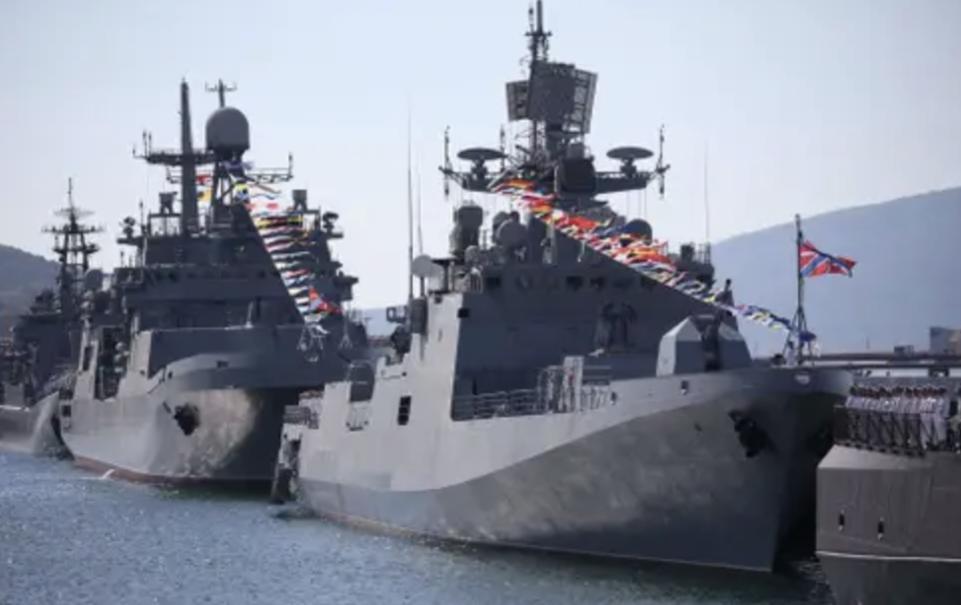 Các tàu chiến của Hạm đội Biển Đen tham gia lễ kỷ niệm Ngày hải quân tại Thành phố cảng Novorossiysk. Ảnh: Getty