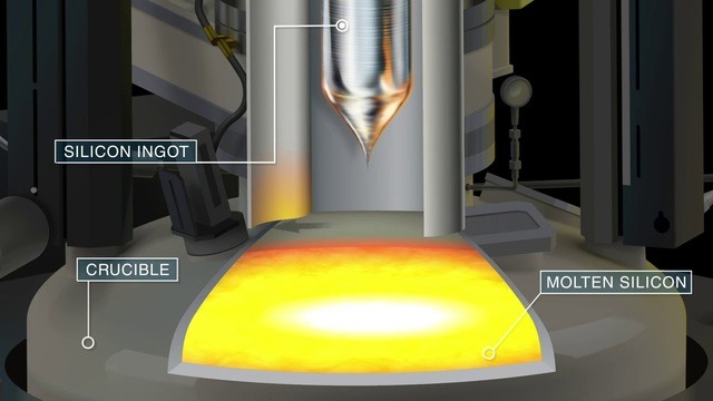 Nguyên liệu thô để sản xuất chip là silica (silic dioxide) với hàm lượng silicon cao. Trước tiên, nguyên liệu thô này phải được nấu chảy trong nồi nấu bằng than chì, sau đó tinh chế và qua quá trình Czochralski để tạo ra một thanh silicon hình trụ. Quá trình này giúp loại bỏ các tạp chất và tạo ra silicon có độ tinh khiết cao cần thiết cho sản xuất chip.