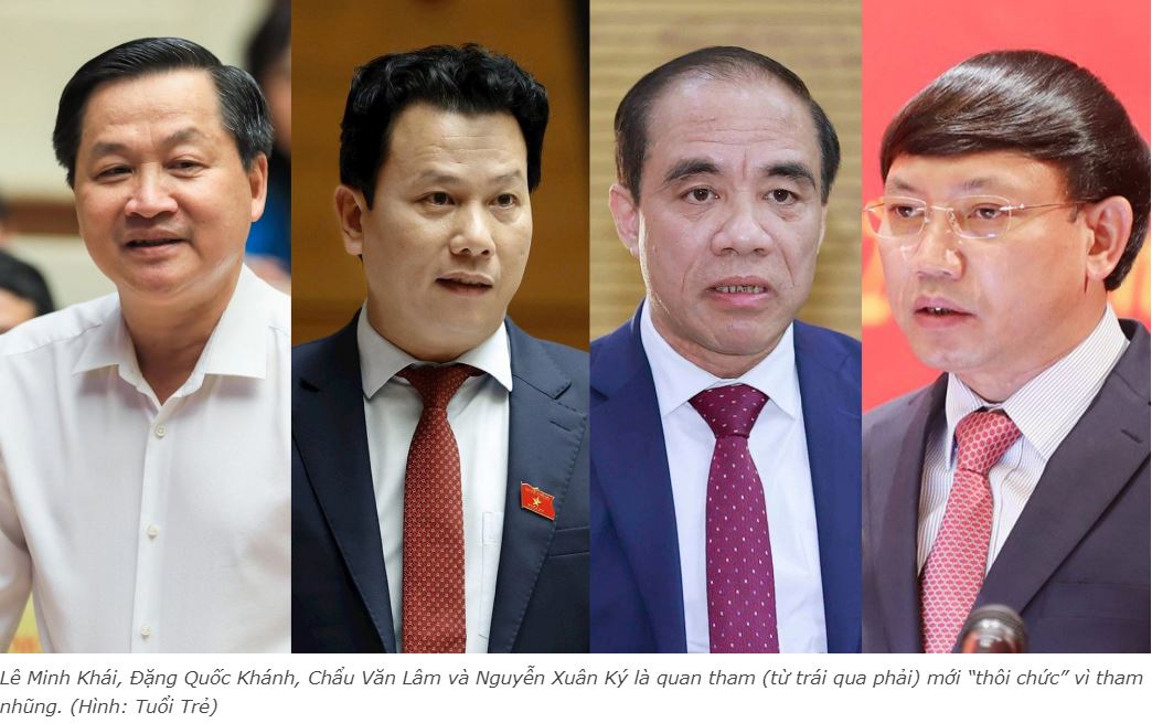 Lê Minh Khái, Đặng Quốc Khánh, Chẩu Văn Lâm và Nguyễn Xuân Ký là quan tham (từ trái qua phải) mới “thôi chức” vì tham nhũng. (Hình: Tuổi Trẻ)