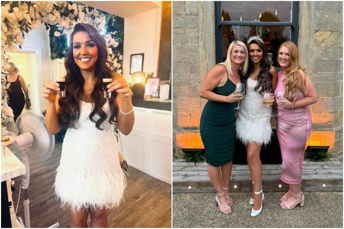 Lindsay Slater mặc váy cưới tận hưởng bữa tiệc cùng bạn bè và người thân. Ảnh: The Sun