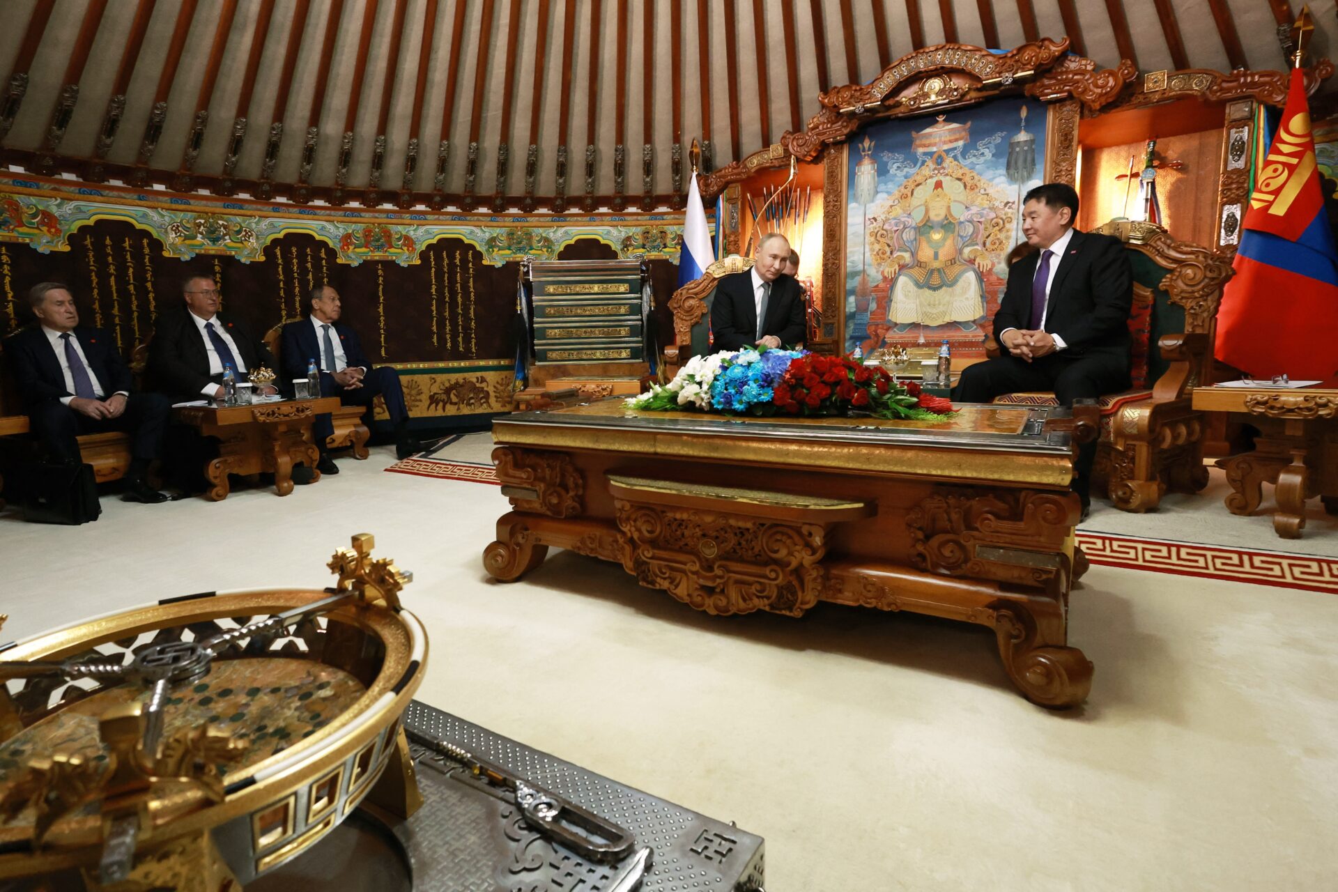 Trong chuyến viếng thăm chính thức, Putin hội kiến nhà lãnh đạo Mông Cổ Ukhnaa Khurelsukh vào Thứ Ba, là chuyến công du đầu tiên Putin viếng thăm một quốc gia thành viên của Tòa Án Hình Sự Quốc Tế ICC từ lúc tòa án này ban hành lệnh bắt giữ ông cách đây gần 18 tháng liên quan tới tội ác chiến tranh tại Ukraine.