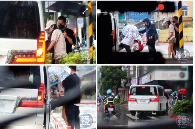 Phóng viên kể ngay sau đó, họ nhìn thấy một giáo viên mẫu giáo đích thân dẫn 2 con của An Dĩ Hiên ra xe dưới cơn mưa như trút. Họ không lập tức về nhà mà ghé qua một trung tâm thương mại gần đó. Khi không có chồng bên cạnh, An Dĩ Hiên phải cáng đáng mọi việc trong gia đình. Do đó, cô cần nhờ đến sự giúp đỡ của tài xế và bảo mẫu.