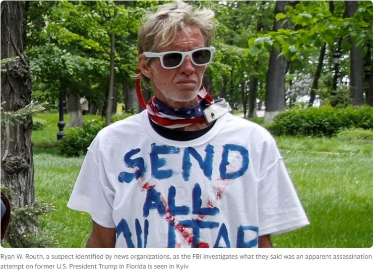 [Ảnh Ryan W. Routh, nghi phạm được các tổ chức tin tức xác định, khi FBI điều tra những gì họ nói là một nỗ lực ám sát rõ ràng đối với cựu Tổng thống Hoa Kỳ Trump ở Florida được nhìn thấy ở Kyiv]