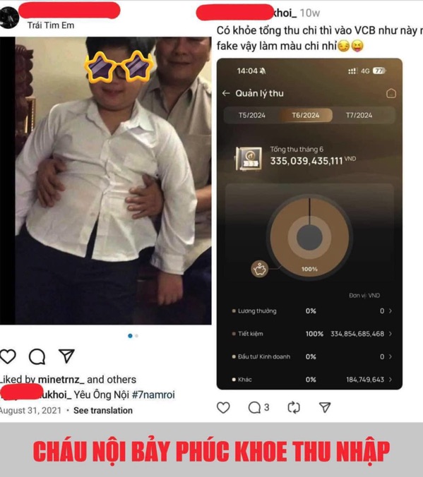 Trên trang Instagram này, Nguyễn Như Khôi đăng h́nh chụp cùng với Nguyễn Xuân Phúc với nội dung “Yêu ông nội”, khiến dư luận cho rằng Khôi chính là cháu nội của Nguyễn Xuân Phúc. Ngoài ra Nguyễn Như Khôi cũng khoe số tài khoản ngân hàng có tới hơn 335 tỷ đồng, cùng với bộ sưu tập đồng hồ hàng hiệu.