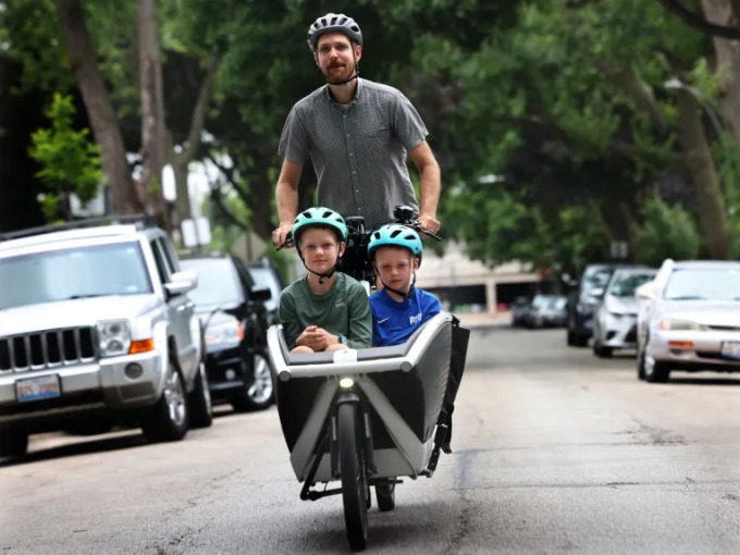 Nhiều gia đình ở Chicago sử dụng xe đạp có thùng để đi lại, mua sắm và đưa con đi học.
