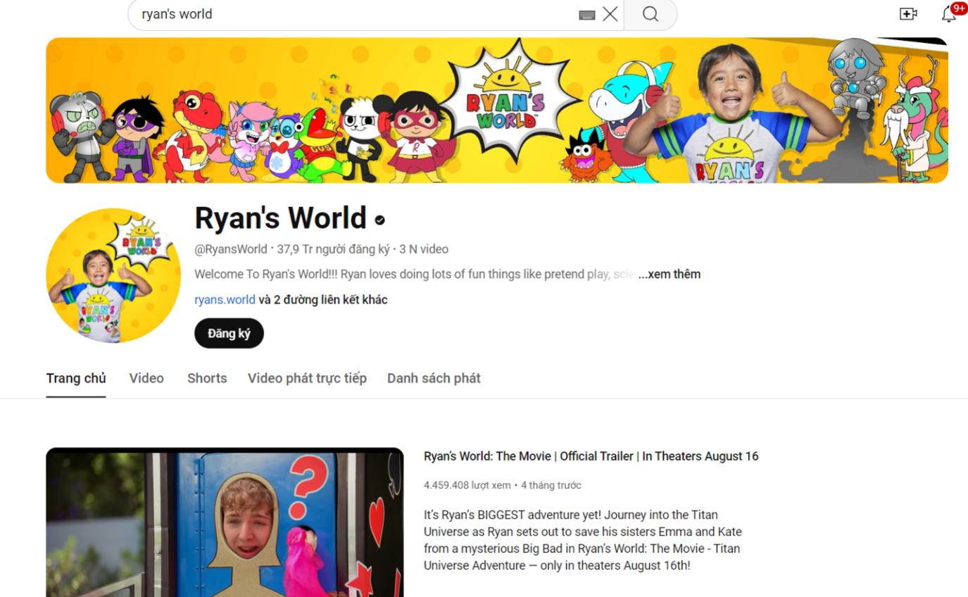Cậu bé Ryan Kaji, 13 tuổi, chủ nhân kênh YouTube Ryan's World (tạm dịch: Thế giới của Ryan), là một trong những YouTuber kiếm được nhiều tiền nhất thế giới qua các năm nhờ việc "đập hộp", đánh giá các loại đồ chơi.