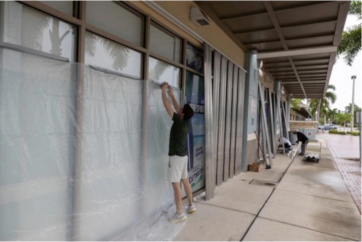 Người dân đóng cửa các doanh nghiệp khi cơn bão Milton tiến gần Fort Myers, Florida (Mỹ) ngày 8.10.2024