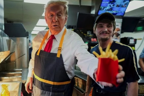 Ông Trump và các đồng minh gần đây tăng cường công kích ứng viên đảng Dân chủ Kamala Harris, cáo buộc bà nói dối về việc từng làm nhân viên tại nhà hàng McDonald's hồi đại học để thu hút sự ủng hộ của tầng lớp lao động. Nhóm của Trump cho rằng bà Harris chưa từng làm việc tại McDonald's vì công việc này không được liệt kê trong sơ yếu lý lịch của bà.