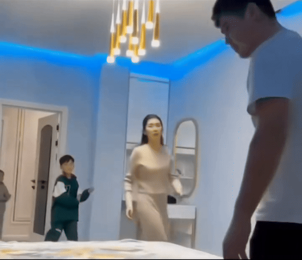 Lúc này, người vợ đang đứng ở cửa nhìn vào và lập tức chạy đến với vẻ mặt lo lắng. Những người con còn lại cũng thể hiện sự sợ hãi trên khuôn mặt sau khi chứng kiến sự việc của cha và cậu con trai. Người vợ rõ ràng đang rất bối rối và lo lắng vì không rõ chuyện gì đã khiến chồng tức giận đến thế.