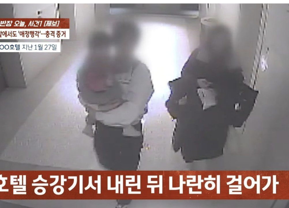 Camera an ninh đã ghi lại hình ảnh người vợ đang chuẩn bị làm thủ tục nhận phòng tại khách sạn, trong khi đứa con trai 2 tuổi và học sinh nam đứng bên cạnh. Học sinh nam ban đầu định ôm đứa bé nhưng lại quay sang ôm chầm lấy người phụ nữ, thể hiện tình cảm thân mật như một cặp đôi. Trong nhà hàng của khách sạn, cô đứng dậy từ ghế và hôn lên trán học sinh nam một cách ngọt ngào.