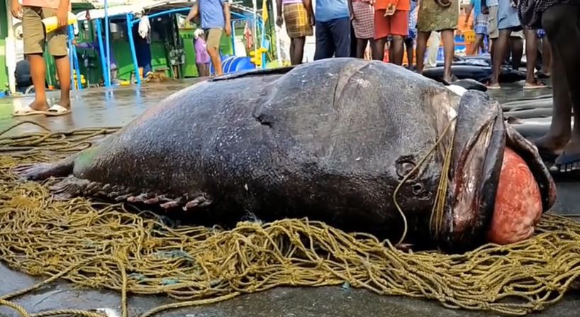 Một ngư dân địa phương đã bắt được con cá mú khổng lồ, loài cá rất hiếm thấy ở khu vực Ấn Độ Dương.