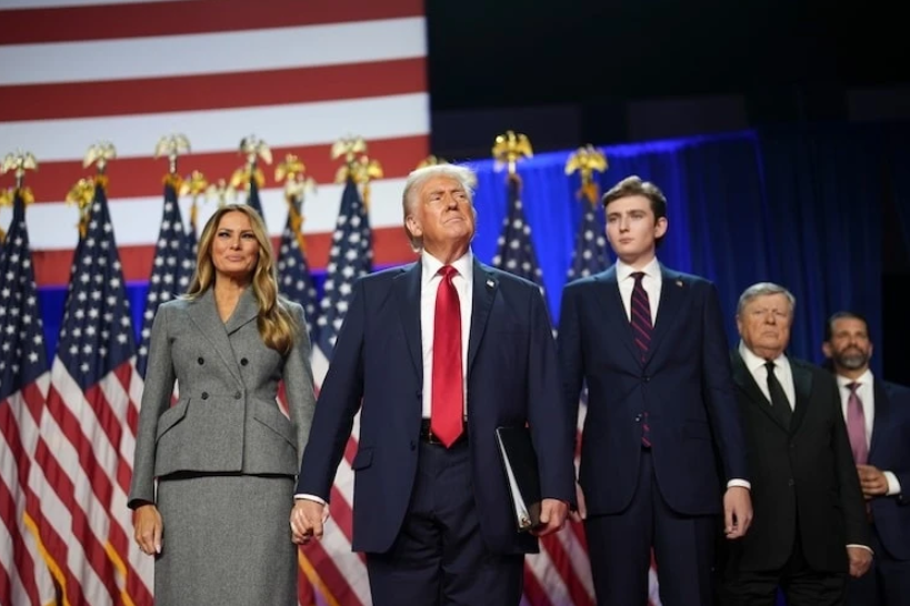 Lên sân khấu chúc mừng chiến thắng của ông Donald Trump sau cuộc bầu cử tổng thống Mỹ, bà Melania diện set đồ thanh lịch giá 6.600 USD của Dior.