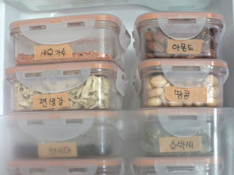 Nếu bạn cũng giống người Hàn Quốc, thích có nhiều món ăn phụ trong bữa ăn của mình thì bạn hãy học ngay cách từ bà nội trợ trung niên này, để những món ăn phụ vào các hộp nhỏ và bảo quản chúng theo từng phần riêng lẻ. Bởi nếu để trong hộp lớn và lấy ra lắp lại nhiều lần, mùi vị của chúng sẽ kém đi và vi khuẩn sẽ sinh sôi.
