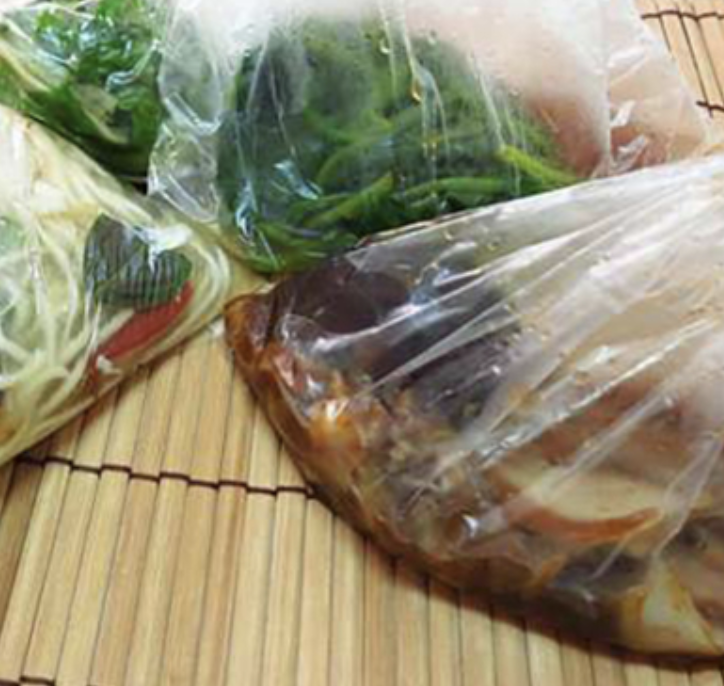 Chị Lâm năm nay 40 tuổi, công việc rất bận rộn nên ít khi nấu nướng. Chị thường mua thức ăn nấu sẵn với nhiều món đa dạng mỗi ngày, đựng trong túi ni lông mang về.