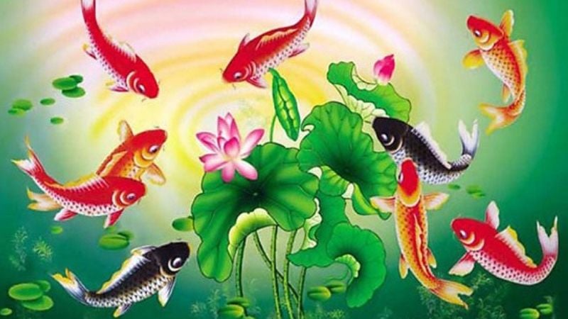 Chúng ta thường thấy bức tranh “Cửu ngư quần hội” hay bức tranh “Lý ngư vọng nguyệt” từ thời xa xưa đã được treo trong nhà, điều này cho thấy rằng tranh cá chép phú quý được ưa chuộng từ rất lâu.
