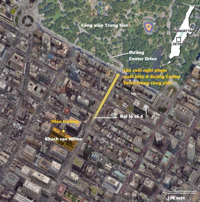 Sát thủ sau đó chạy băng qua đường vào một hẻm nhỏ, đi dọc Đại lộ số 6 rồi lên xe đạp điện chạy về phía Công viên Trung tâm, từ đó mất dấu.