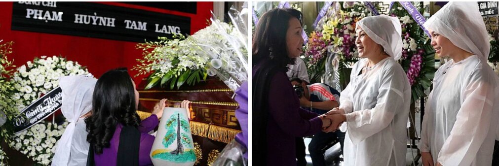 Nghệ sĩ Nhân dân Bạch Tuyết đến viếng danh thủ Tam Lang lúc ông mất. Ảnh: TL