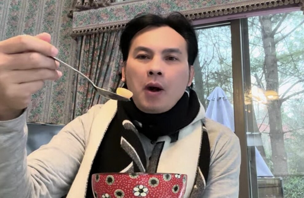 Anh nói: "Tôi thích ăn cơm, mấy hôm nay ăn bún phở nọ kia nên thèm cơm, ăn cơm cho lành bụng.