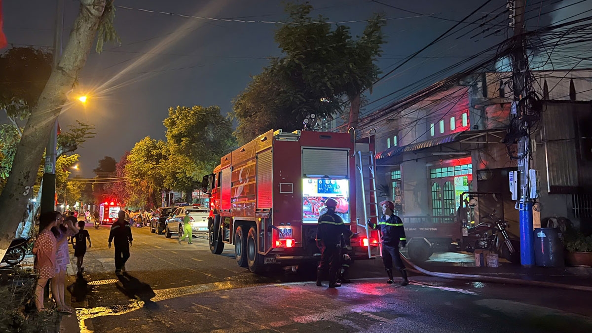 Lục lượng chữa cháy có mặt tại hiện trường (ảnh: ĐC)
