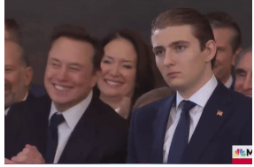 Trong một clip được chia sẻ rộng rãi về lễ nhậm chức của ông Donald Trump, đứa con út của tổng thống và tỷ phú sinh ra ở Nam Phi có biểu cảm trái ngược khi đứng cạnh nhau.