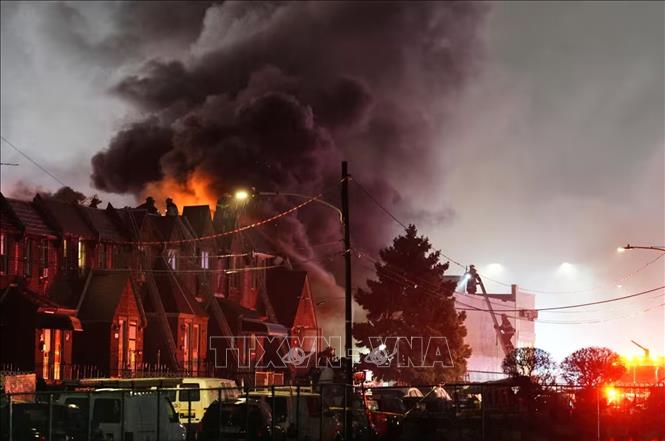 Khói lửa bốc lên tại hiện trường máy bay rơi ở Philadelphia, Mỹ ngày 31/1/2025.
