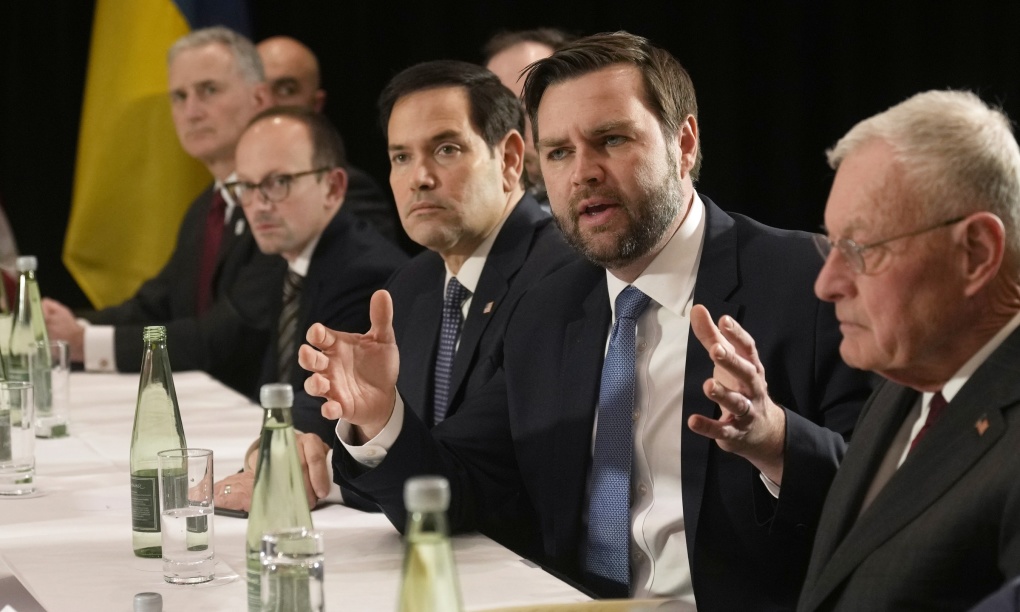 Phó tổng thống Mỹ JD Vance (thứ hai từ phải qua) và các quan chức Mỹ trong cuộc gặp với Tổng thống Ukraine Volodymyr Zelensky tại Munich, Đức, ngày 14/2. Ảnh: AP