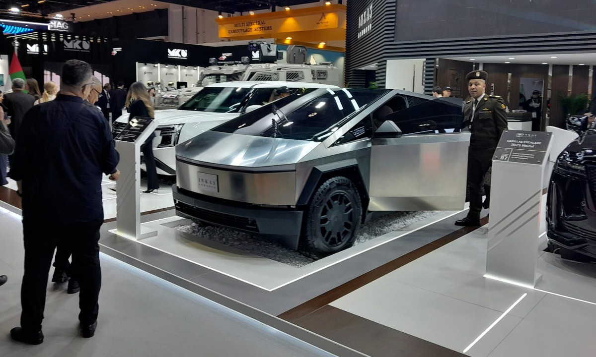 Xe Cybertruck bọc giáp được công ty Inkas Armored của Canada trưng bày tại triển lãm.