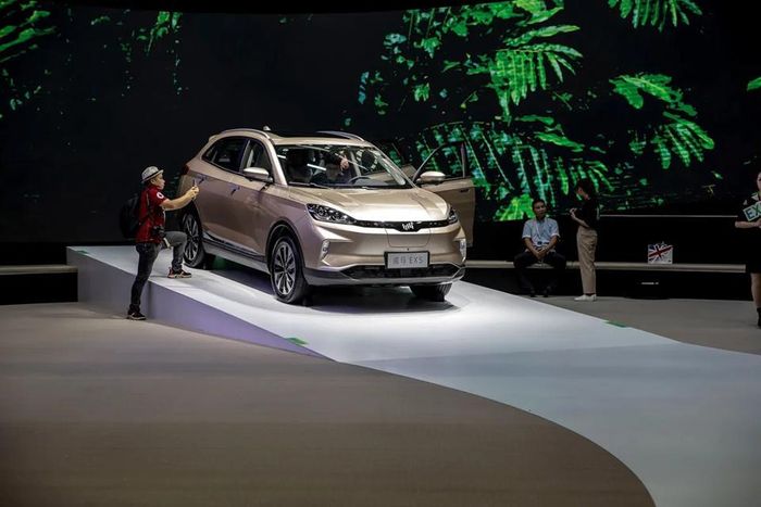 Xe điện EX5 của WM Motor tại triển lãm ô tô Quảng Châu năm 2018 - Ảnh: Bloomberg