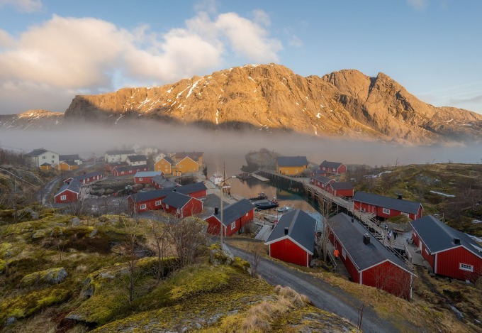 Làng chài Nusfjord, hạt Nordland, Na Uy từ trên cao. Ảnh: Đinh Gia Bảo