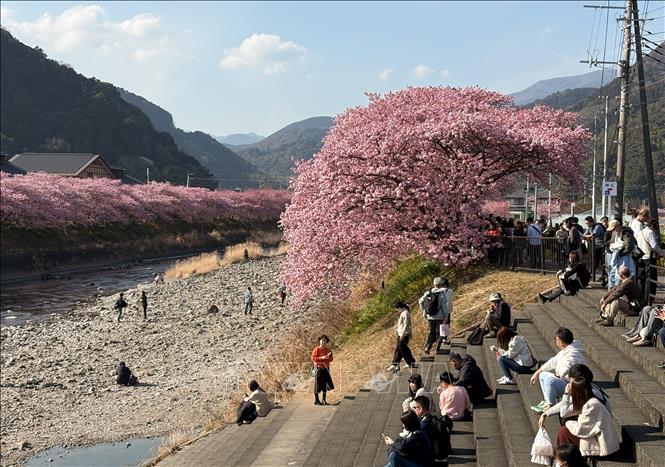 Thị trấn Kawazu, tỉnh Shizuoka (Nhật Bản) được biết đến là quê hương của giống hoa anh đào kawazu nở sớm với màu hồng quyến rũ.