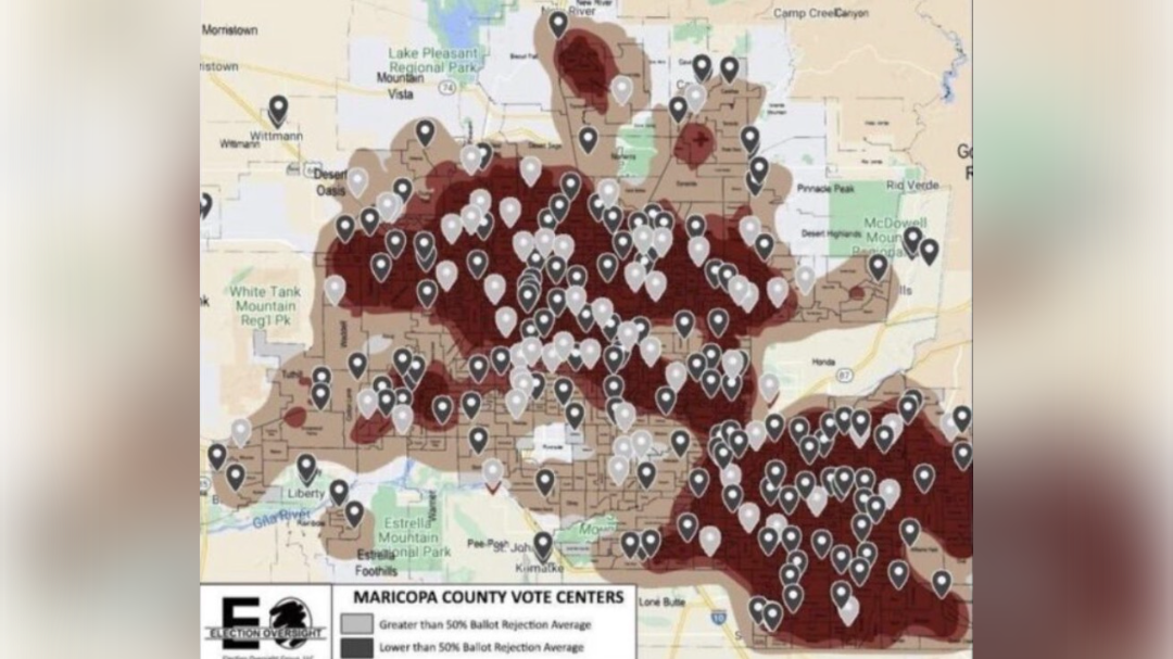 Do những thay đổi được thực hiện đối với hệ thống bỏ phiếu trước ngày bầu cử, “ít nhất 8.000 lá phiếu được định cấu h́nh sai đă được in tại 127 trung tâm bỏ phiếu vào Ngày bầu cử ” và “các máy kiểm phiếu tại trung tâm bỏ phiếu đă ghi nhận hơn 7.000 lần từ chối cứ sau 30 phút từ 6:30 sáng đến 8:00 tối”. Quận Maricopa không tranh chấp dữ liệu chính xác này, được lấy từ các tệp nhật kư hệ thống của họ. Thông tin này đă được We The People AZ Alliance tŕnh bày trong phiên điều trần của Thượng viện Arizona vào năm 2023, cùng với bằng chứng cho thấy các máy kiểm phiếu đă từ chối các lá phiếu gần 250.000 lần.