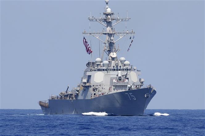 Tàu khu trục có sử dụng tên lửa dẫn đường USS Donald Cook của Hải quân Mỹ tham gia một cuộc diễn tập trên Địa Trung Hải.