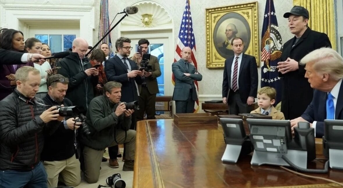 Các phóng viên tác nghiệp trong Phòng Bầu dục ở Nhà Trắng ngày 11/2. Ảnh: AP