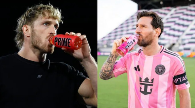 Thương hiệu Prime của Logan Paul (trái) và Mas+ của Lionel Messi.