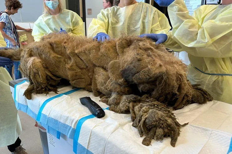 Gần như không thể nhận diện Crawfish được vì lớp lông dày và rối nùi. (Ảnh: Trung tâm Cứu hộ động vật Best Friends)