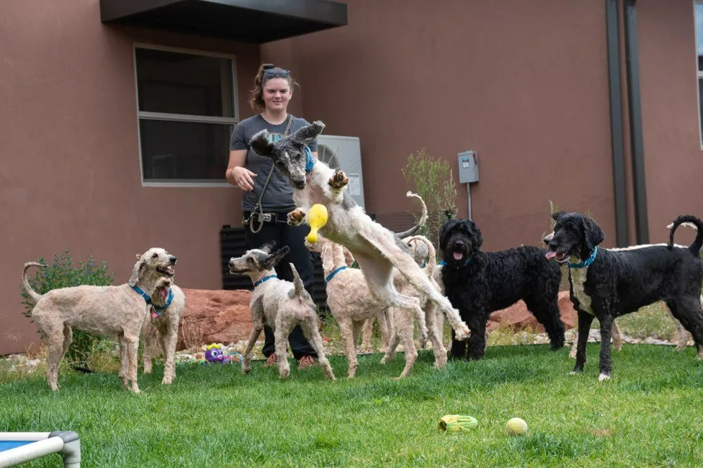 Crawfish vui vẻ chơi đùa cùng những người bạn 4 chân khác tại trung tâm (Ảnh: Trung tâm Cứu hộ động vật Best Friends)