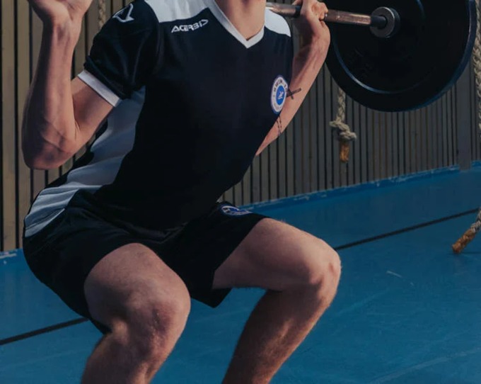 Một người đàn ông đang tập squat với tạ. Ảnh: Unplash