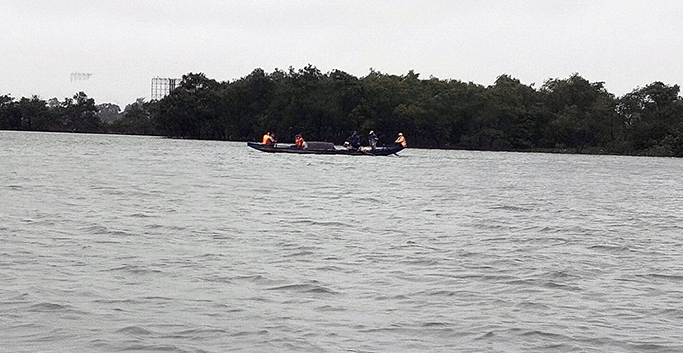 Lực lượng chức năng cùng người dân t́m kiếm người nghi nhảy cầu.