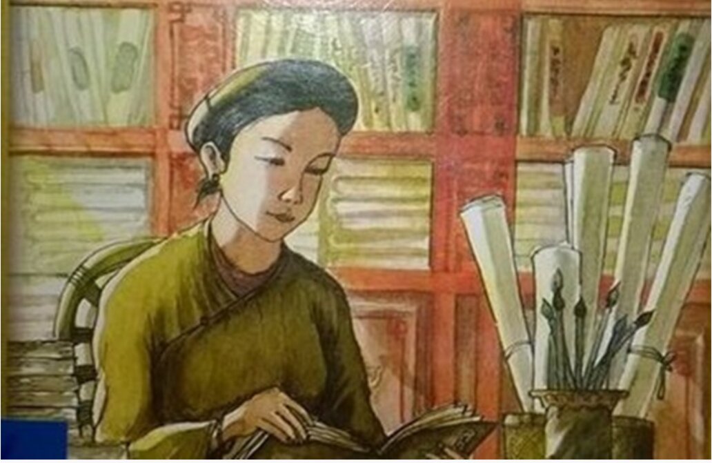 Tranh vẽ bà huyện Thanh Quan. Ảnh: LSVN.